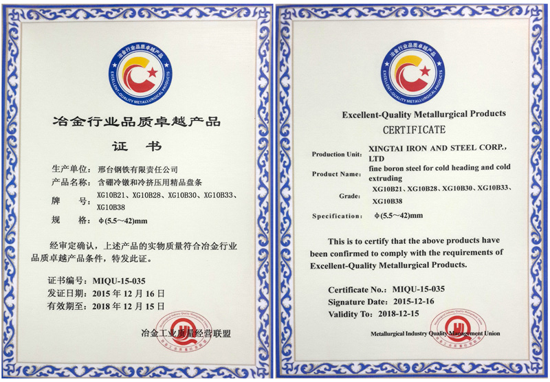 含硼冷鐓和冷擠壓用精品盤(pán)條XG10B21、XG10B28、XG10B30、XG10B33、XG10B38φ(5.5~42)mm獲冶金行業(yè)品質(zhì)卓越產(chǎn)品