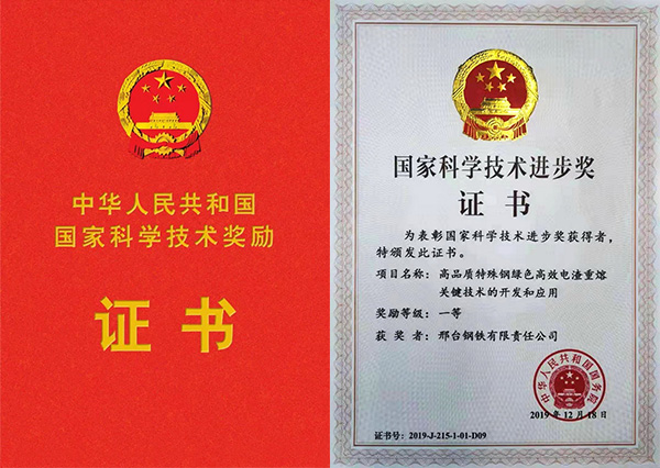 2020年1月10日,2019年度國(guó)家科學(xué)技術(shù)獎(jiǎng)勵(lì)大會(huì)在人民大會(huì)堂隆重舉行。邢鋼作為主要完成單位之一,完成的《高品質(zhì)特殊鋼綠色高效電渣重熔關(guān)鍵技術(shù)的開發(fā)和應(yīng)用》,喜獲國(guó)家科學(xué)技術(shù)進(jìn)步一等獎(jiǎng),系全國(guó)鋼鐵行業(yè)十五年來(lái)首次獲此殊榮。