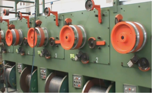 1、放線:具有積線功能的放線機,共40組,一字排開,同步工作。