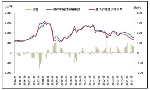 圖5:進(jìn)口礦和國(guó)產(chǎn)礦絕對(duì)價(jià)格指數(shù)