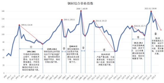 縱觀上世紀90年代以來鋼鐵行業(yè)歷次典型下行歷程,主要呈現(xiàn)以下特點: