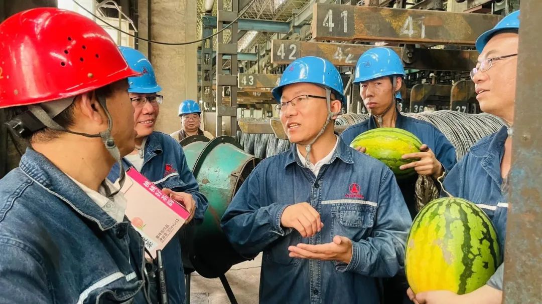 7月8日上午,為落實(shí)公司黨委書記、董事長(zhǎng)張育明關(guān)于“把防暑降溫、關(guān)愛(ài)員工、安全生產(chǎn)等抓細(xì)抓實(shí)”的工作要求,夏日送清涼活動(dòng)有序開(kāi)展,公司向煉鋼、線材、煉鐵、燒結(jié)、動(dòng)力、儲(chǔ)運(yùn)高溫下堅(jiān)守崗位的職工送去西瓜、飲料慰問(wèn)品及防暑降溫必備物資用品,把企業(yè)的關(guān)懷送到職工心坎里,對(duì)大家一直以來(lái)為邢鋼辛勤付出表達(dá)謝意,并囑咐在崗員工在堅(jiān)守崗位的同時(shí)注意勞逸結(jié)合,謹(jǐn)防高溫中暑,確保身體健康、安全生產(chǎn)。