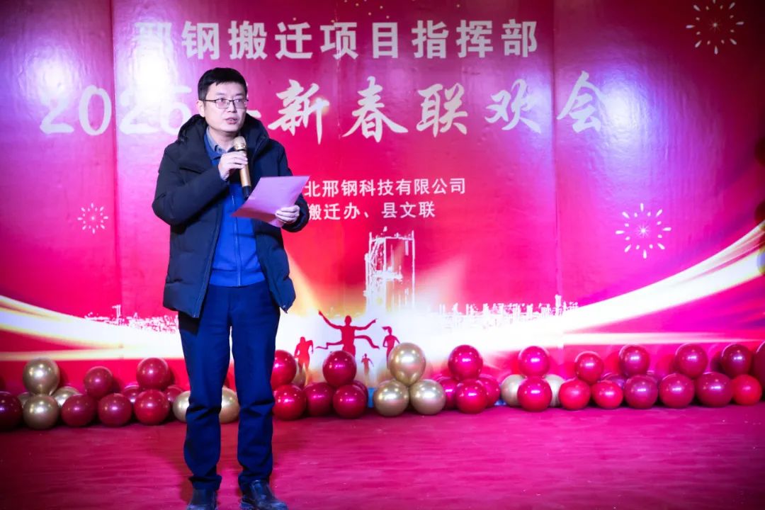 在熱烈、融洽的氣氛中,聯(lián)歡會拉開帷幕。威縣縣委常委、宣傳部長、搬遷專班班長白鋒發(fā)表致辭。他代表威縣縣委、縣政府,向所有關(guān)心支持邢鋼搬遷改造項目的各級領(lǐng)導(dǎo)和參與建設(shè)的同志們表達(dá)了崇高的敬意和衷心的感謝。并高度評價了邢鋼人在過去一年中展現(xiàn)出的團(tuán)結(jié)協(xié)作、頑強(qiáng)拼搏的精神,表示威縣政府將繼續(xù)全力支持邢鋼搬遷項目,推動項目早日建成投產(chǎn),為威縣經(jīng)濟(jì)發(fā)展做出更大貢獻(xiàn)。