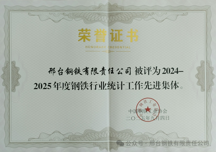 2025年9月10日至12日,由中國鋼鐵工業(yè)協(xié)會主辦的鋼鐵行業(yè)統(tǒng)計工作會議暨統(tǒng)計與信息工作委員會換屆會議在河北遷安召開。邢臺鋼鐵有限責任公司(以下簡稱“邢鋼”)獲評“2024-2025年度鋼鐵行業(yè)統(tǒng)計工作先進集體”,該公司郭興坤同時榮獲“鋼鐵行業(yè)統(tǒng)計工作先進工作者”稱號。這是邢鋼時隔七年再次斬獲該榮譽,體現(xiàn)出企業(yè)在數(shù)據(jù)統(tǒng)計與信息化建設(shè)方面的持續(xù)進步與行業(yè)高度認可。