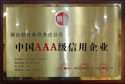 日前,在由中國合作貿(mào)易企業(yè)協(xié)會、中國企業(yè)改革與發(fā)展研究會、全國企業(yè)信用評價(jià)辦公室組織召開的中國企業(yè)科學(xué)發(fā)展論壇暨誠信表彰大會上,邢鋼被評為2010年度“中國AAA級信用企業(yè)”、公司榮獲“全國文明誠信示范單位” 稱號、董事長、總經(jīng)理袁世臻榮獲“全國優(yōu)秀誠信企業(yè)家” 稱號。